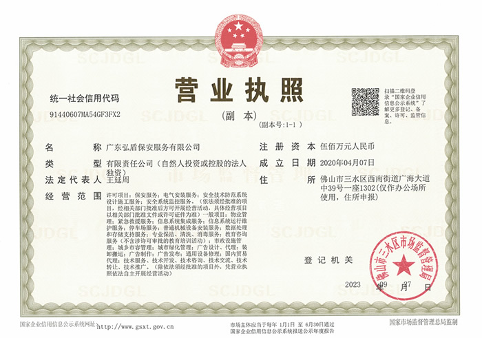 - 廣東弘盾保安服務(wù)有限公司東莞分公司是經(jīng)東莞市公安局嚴(yán)格審核,廣東省公安廳批準(zhǔn)頒發(fā)《保安服務(wù)許可證》,在東莞市工商行政管理機(jī)關(guān)登記注冊的,依法開展門衛(wèi)、巡邏守護(hù)、秩序維護(hù)、隨身護(hù)衛(wèi),安全檢查等綜合安保服務(wù)的專業(yè)保安服務(wù)公司... [詳細(xì)介紹]